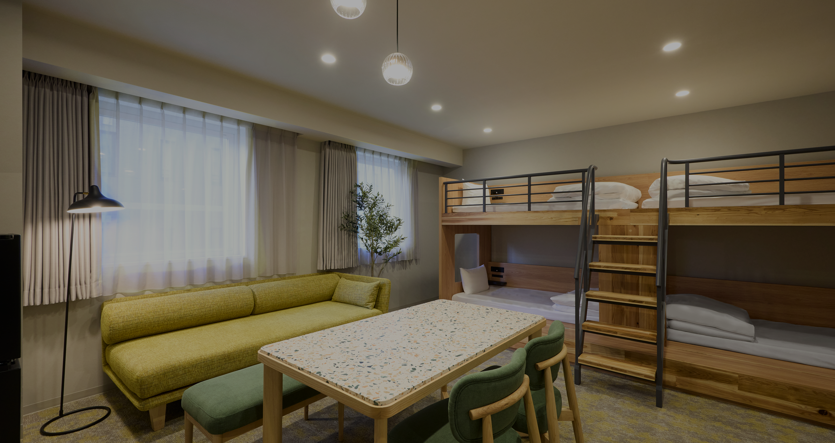 宿泊者の方が自由に集えるリラックススペース。翌日の旅の計画を立てる場所として自由にお過ごしください。